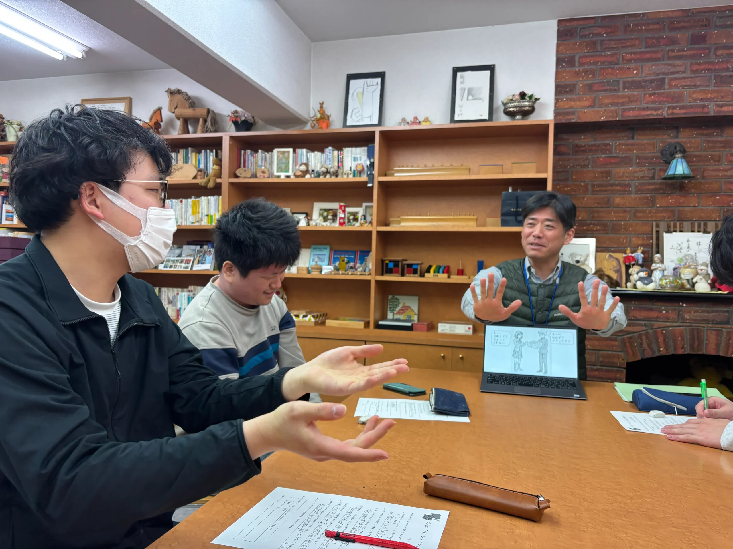 ここでは2人の指導者がチームアプローチの手法を取り入れてソーシャル スキル トレーニング(SST)を行なっています。異なる年齢、性別、能力の人が集い、互いに教え合うことや交流など、小集団の力を使って能力を高め合います。メンバー同士で考える力や能力に違いが生まれるからこそ、学びに深みが増します。また、自分にできる役割を意識しながら参加することで、自分の存在価値や自己肯定感の向上を図ります。