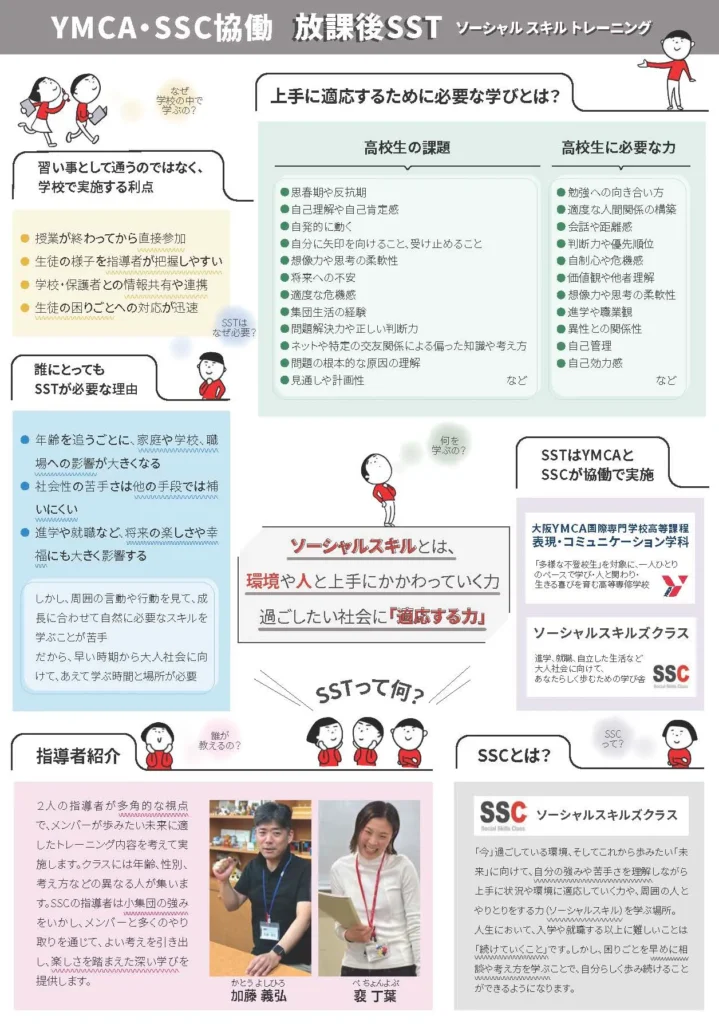 SSC(social skills class)は、「今」過ごしている環境、そしてこれから歩みたい「未来」に向けて、自分の強みや弱みを理解しながら上手に状況や環境に適応していく力や、周囲の人とやりとりをする力を学ぶ場所です。